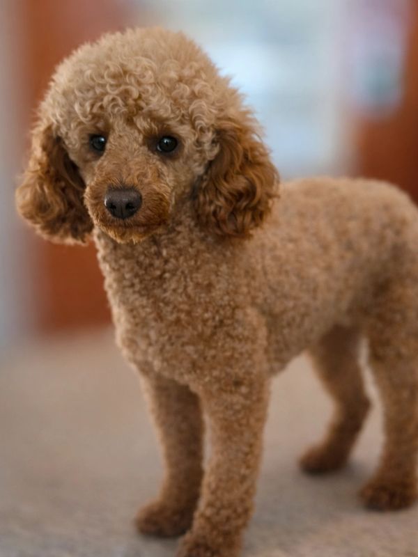 Romeo is our AKC registered red miniature poodle stud weighing in at 14 pounds. He is a proven stud and has sired two miniature poodle litters for our program as well as a miniature aussie doodle litter. He is a motivated stud and was able to successfully mate with our 50 lbs Australian Shepherd (who is also the alpha of the pack).